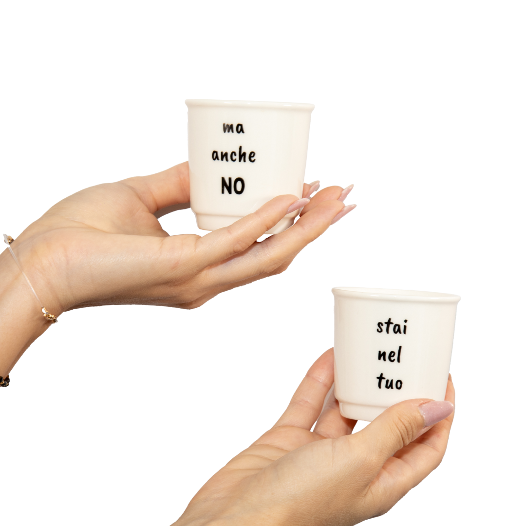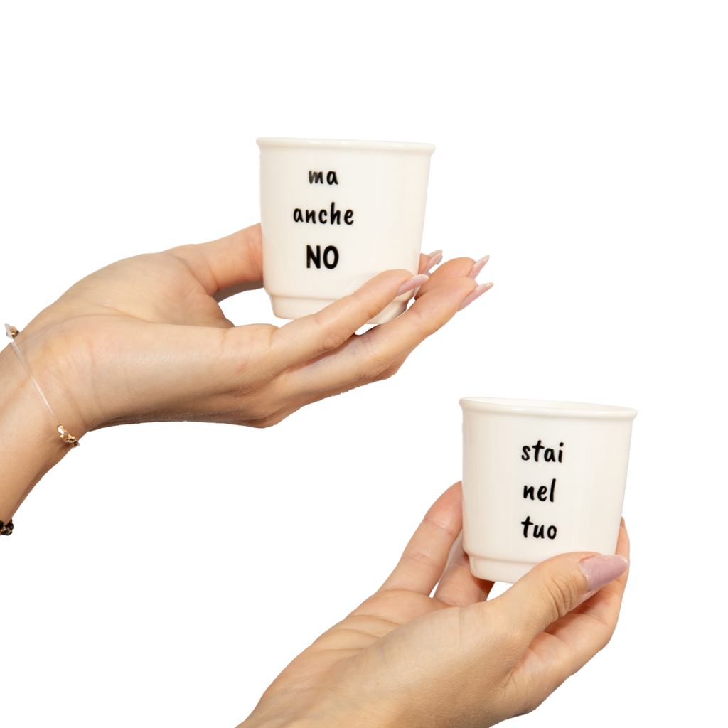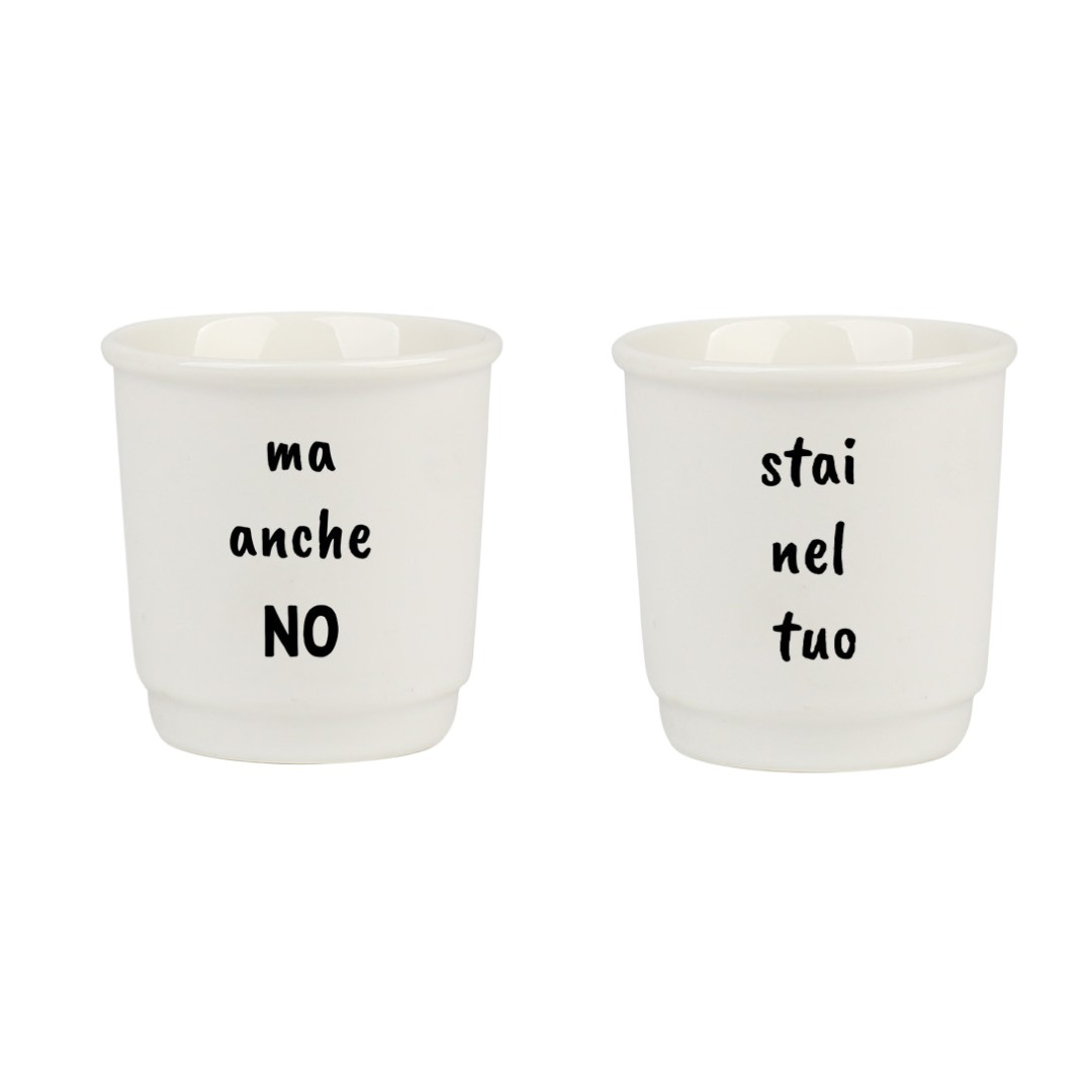Set of "Ma anche No- Stai nel tuo" ceramic coffee cups is backordered and will ship as soon as it is back in stock.