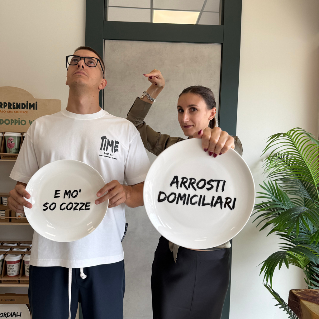 "E mo so cozze" plate is backordered and will ship as soon as it is back in stock.